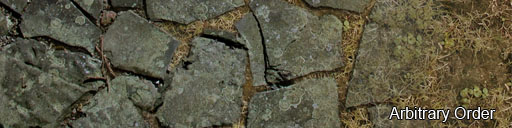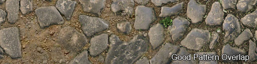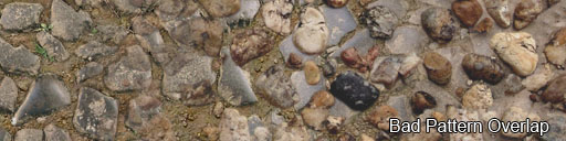 Textures based on the same source almost always work well together. Differences in alpha and color can be used to produce a nice effect and break up tiling in large areas of exposed landscape. You will also get good results overlapping textures that don't use detailed patterns, as you can see in the examples of layer order above.
